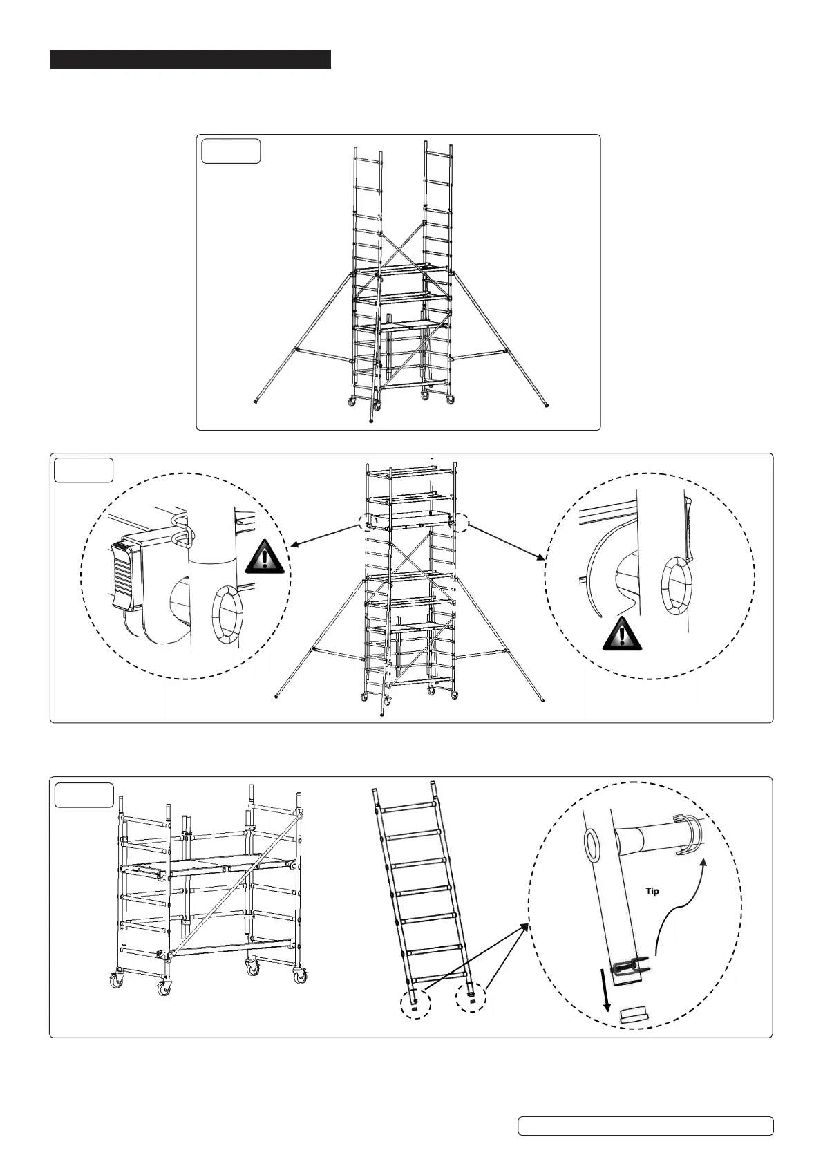 9.3. Start from the base assembled and attach the brace to the 1st rung. Prepare the ‘2 rung’ and ‘7 rung’ ladders removing the pins and