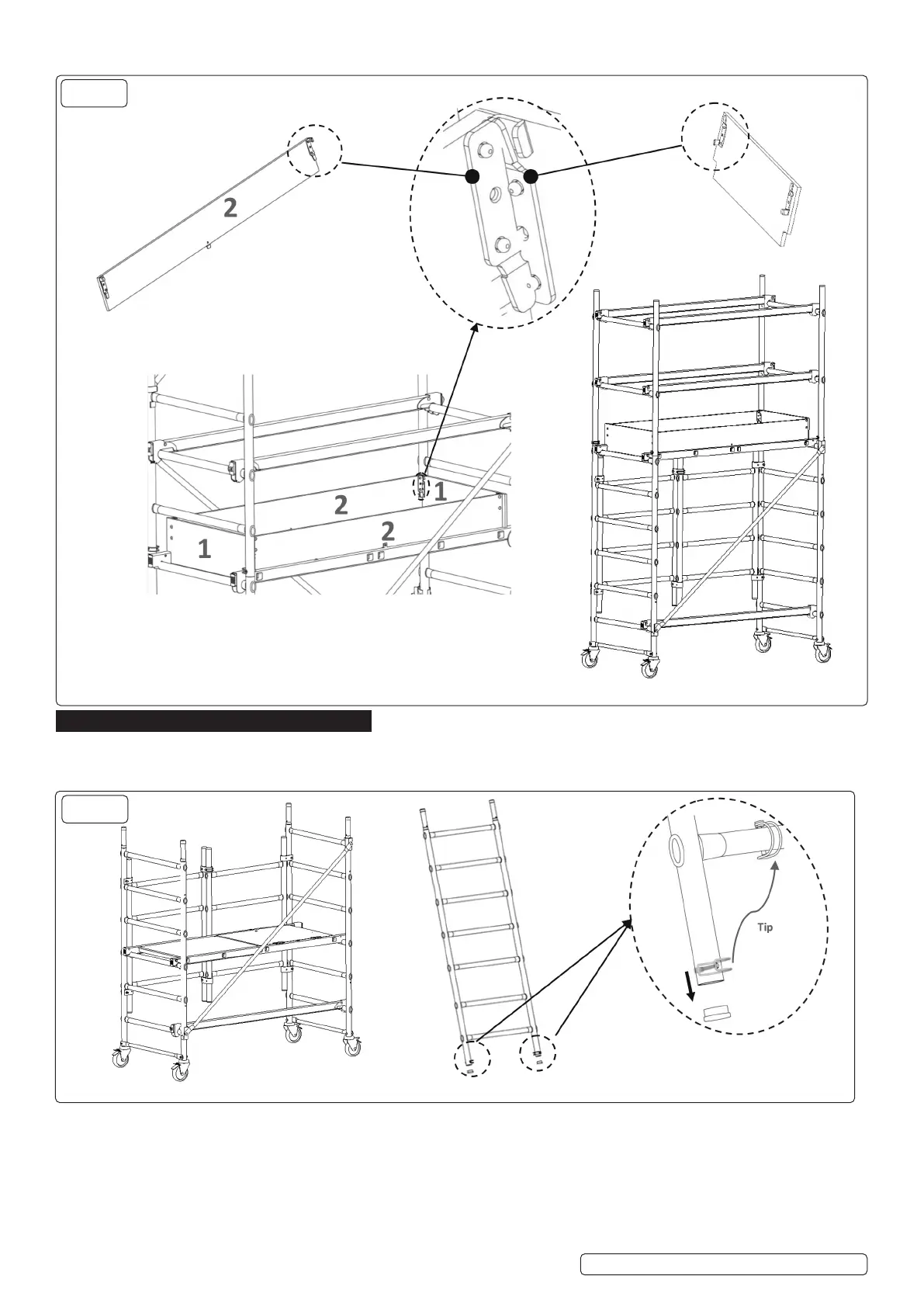 6.5.2. Assemble the toeboards around this platform starting with the end ones (1) and then interlocking the side toeboards (2) (g.14)..