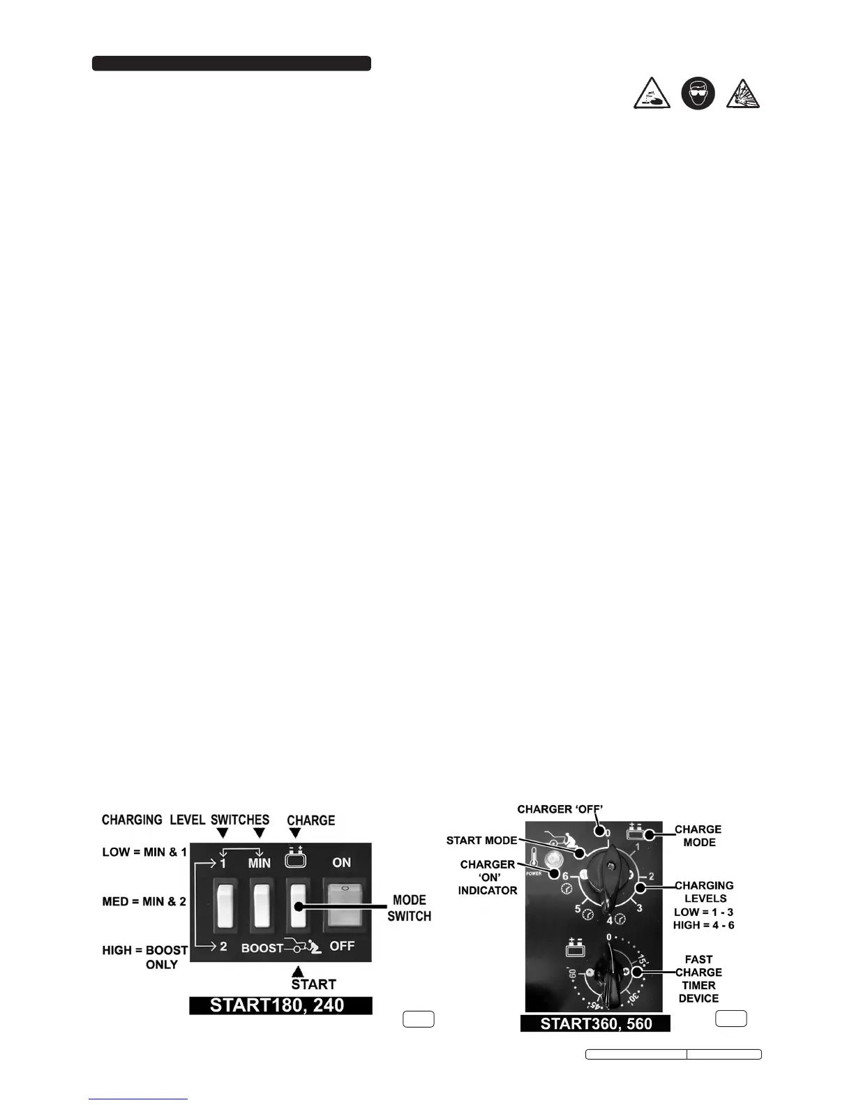 START 360 & START560 (see fig.3). Select charge level 1,2,3,4,5, or 6 using the rotary switch above the timer.
