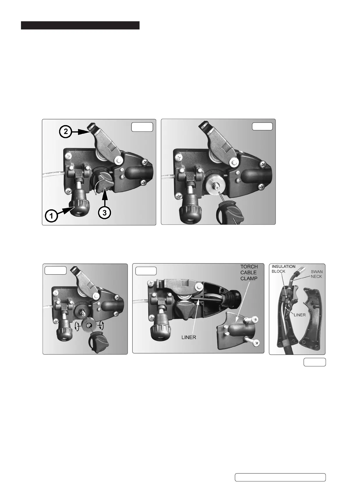 clamp. Undo the torch case (fig.14) and pull the wire liner from theinsulation block. Pull out the liner from the torch cable and insert the
