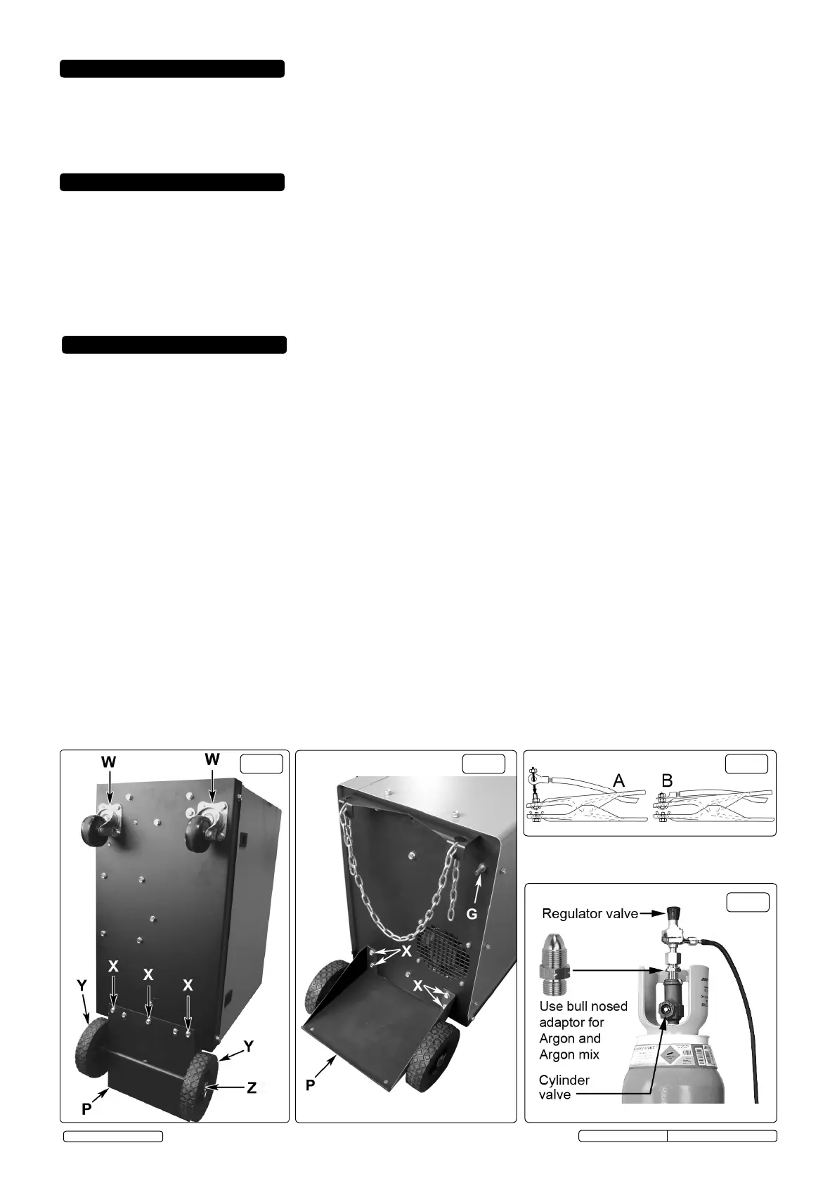 4.1. ASSEMBLING GAS PLATFORM: (Refer to 'P' in figs.1 & 2) Turn the welder upside down on a smooth non-abrasive surface. The welder should be turned over