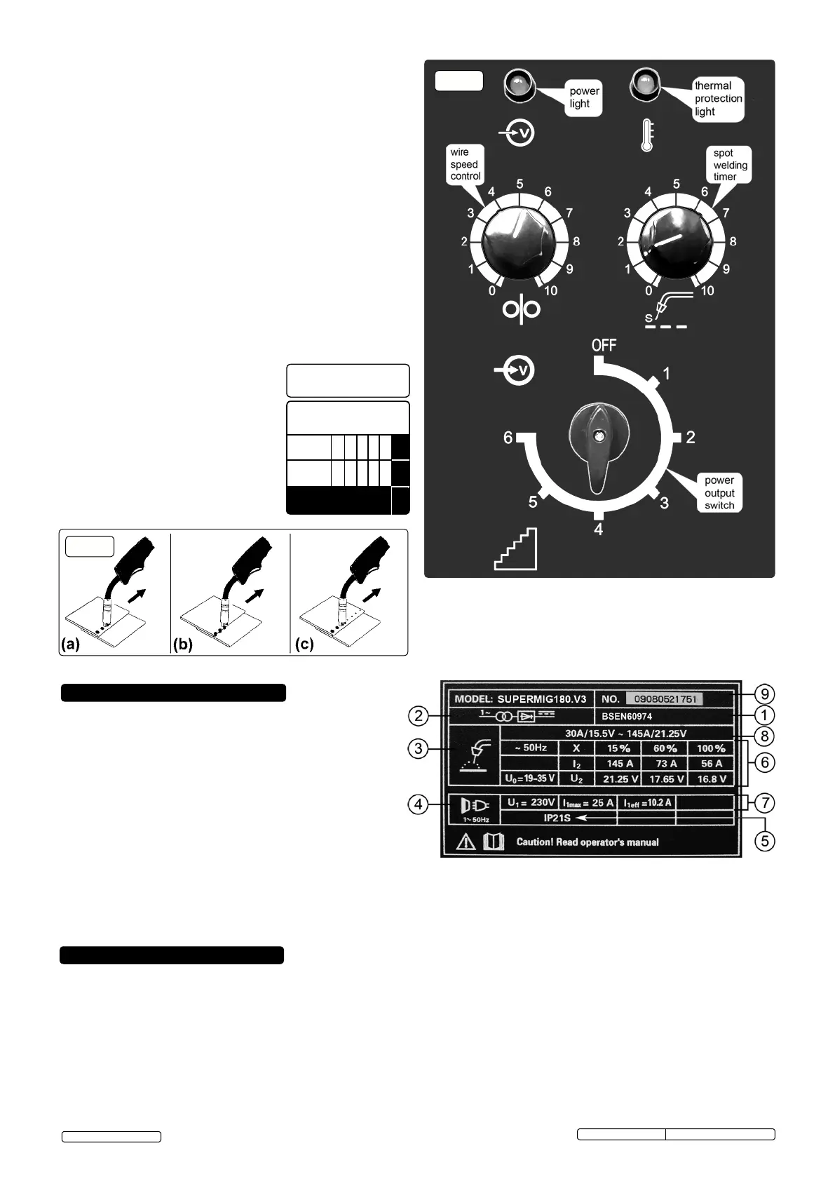 5.1.2 Power Output switch. Set the switch to position 1 or 2 for welding