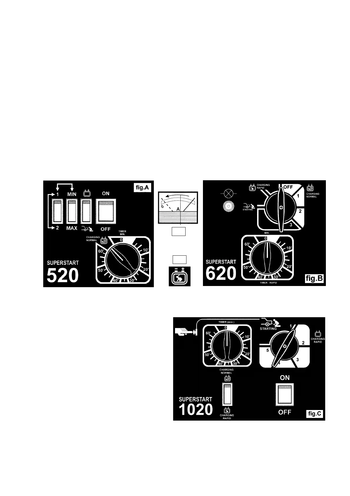 3.3.1. Superstart 520/1.V3 (see fig.A) Set the mode switch (next to the on/off switch) to the charge function indicated by the battery symbol.