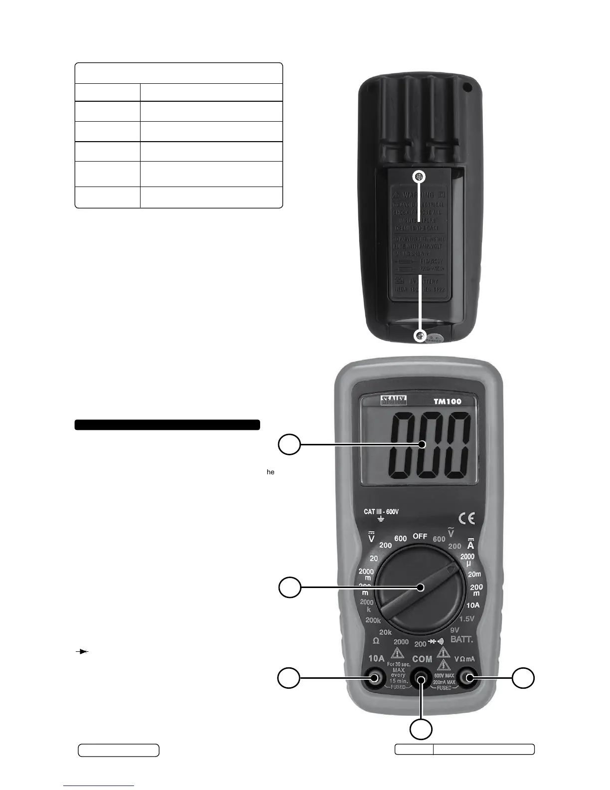 WARNING! NEVERapplyvoltageorcurrenttothemeterthatexceedsthespeciedmaximumasshownbelow: