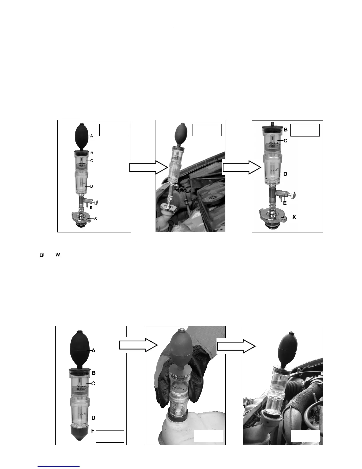 3.3.3 Remove the radiator or header tank cap. Turn on the vehicle engine and wait for steam to appear. Place the tester onto the radiator or