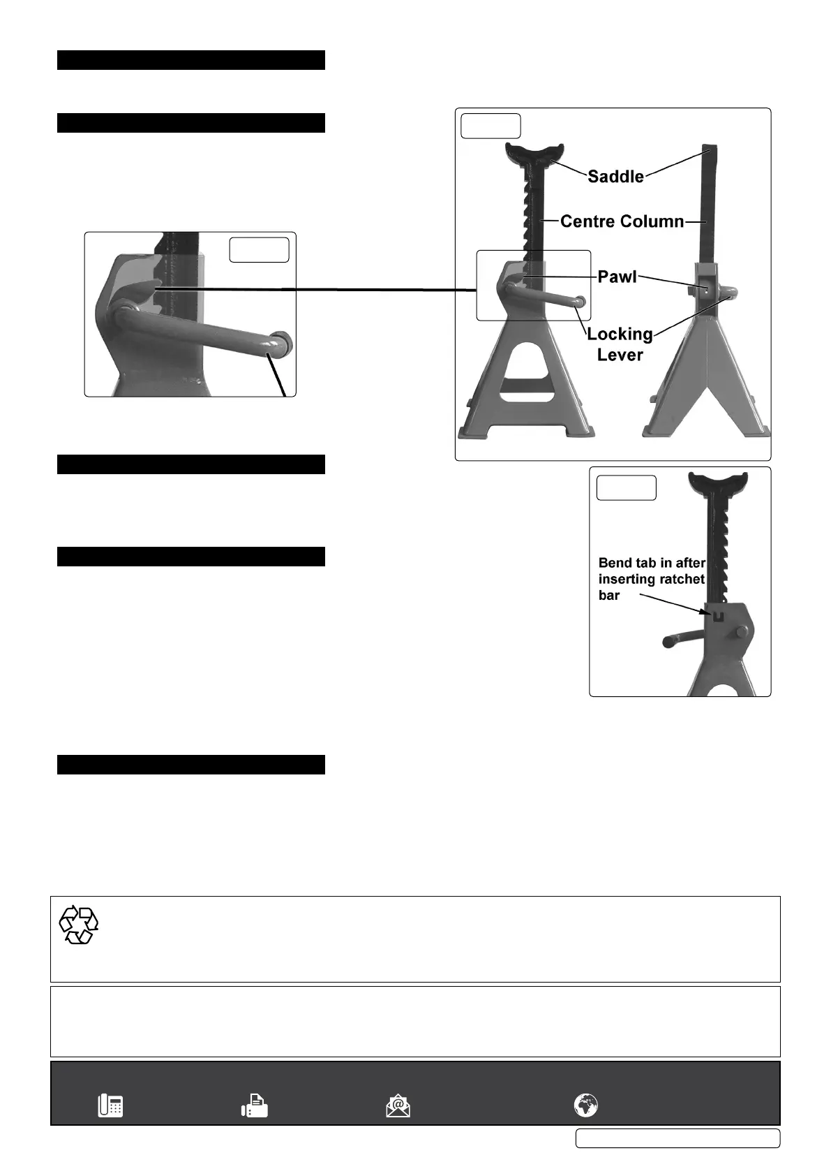 Min./Max. Working Height: 276/435mm. Capacity: 4tonne per pair. Ratchet type axle stand with cast iron support post and tough steel plate