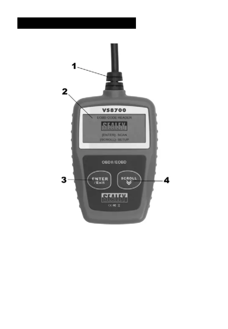 ① EOBD CONNECTOR -- Connects the code reader to the