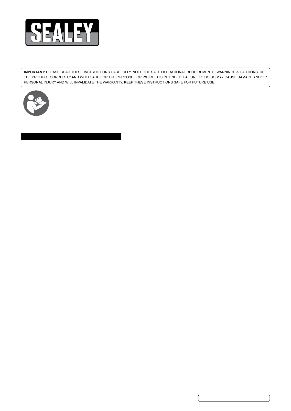 Thank you for purchasing a Sealey product. Manufactured to a high standard, this product will, if used according to these