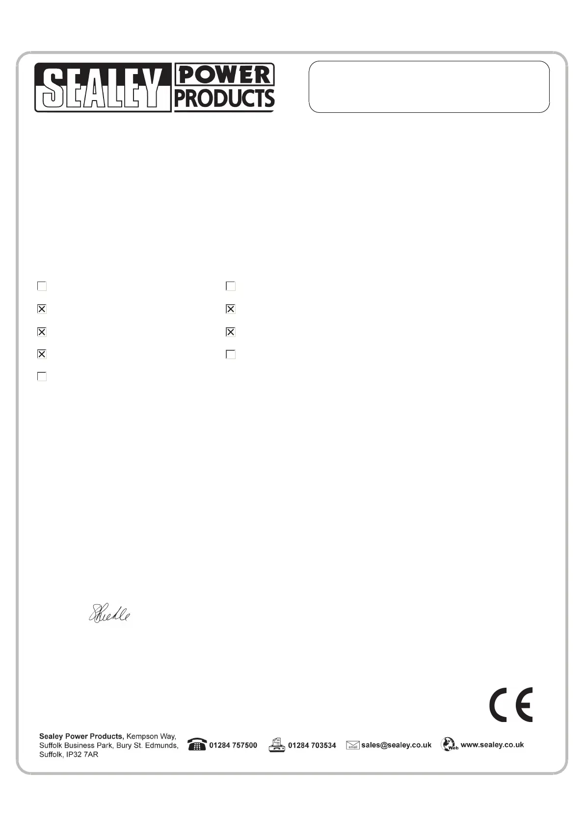Manufacturer's authorised representative within the EC: Jack Sealey Ltd. Kempson Way, Suffolk Business Park,