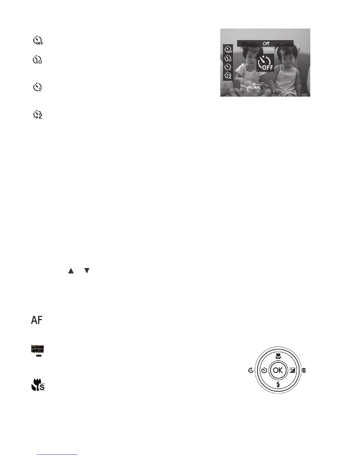 Note:TheSelf-timerfunctionresetstoOffaftereveryshotorwhenpoweringoffthe
