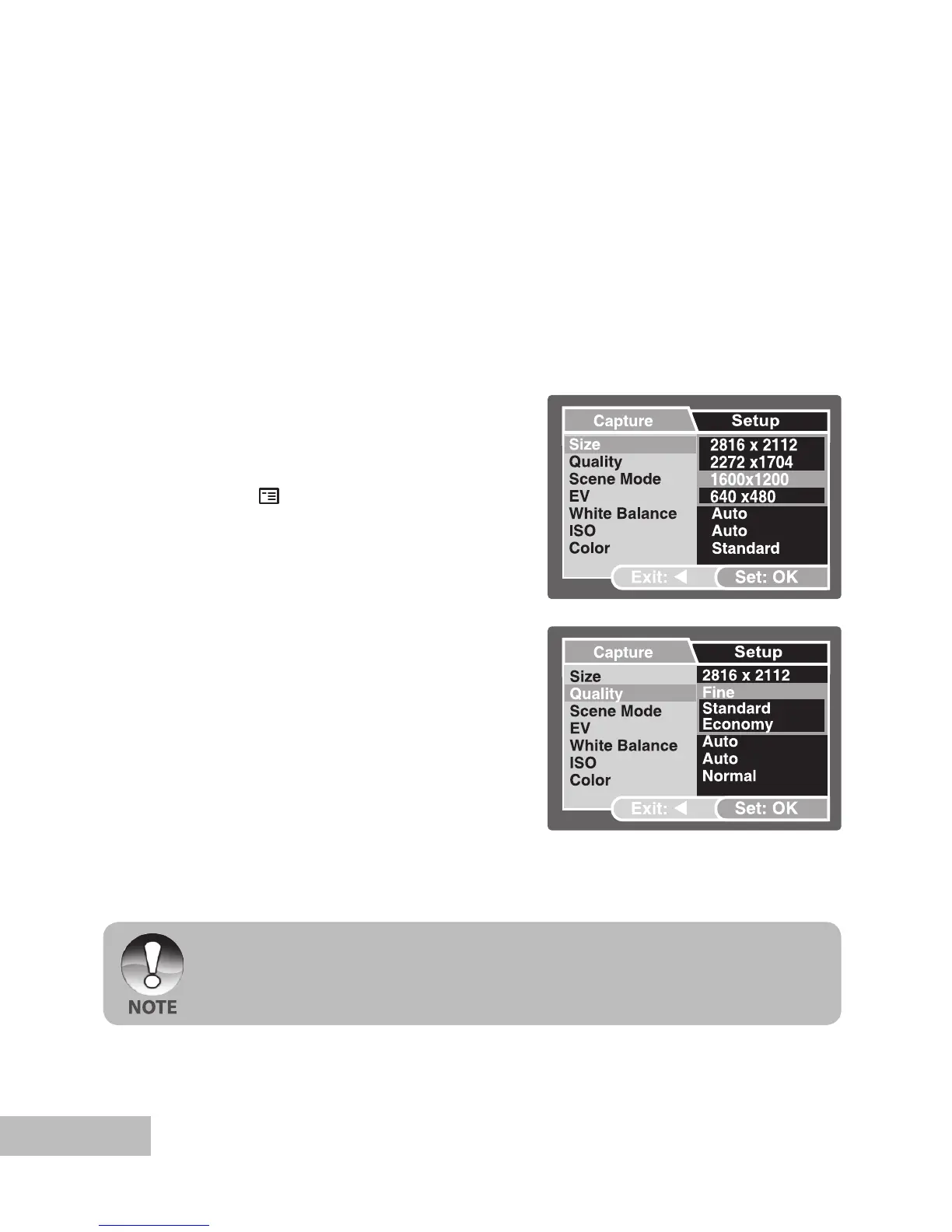 types of images you want to shoot. These settings affect the number of images that