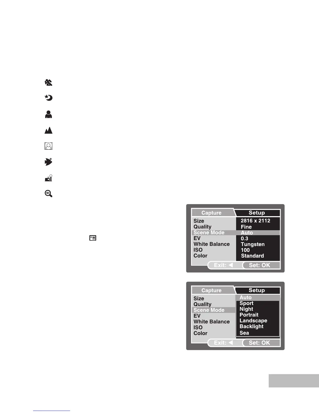 [ ] Sport: Select this mode when you want to photograph fast-moving