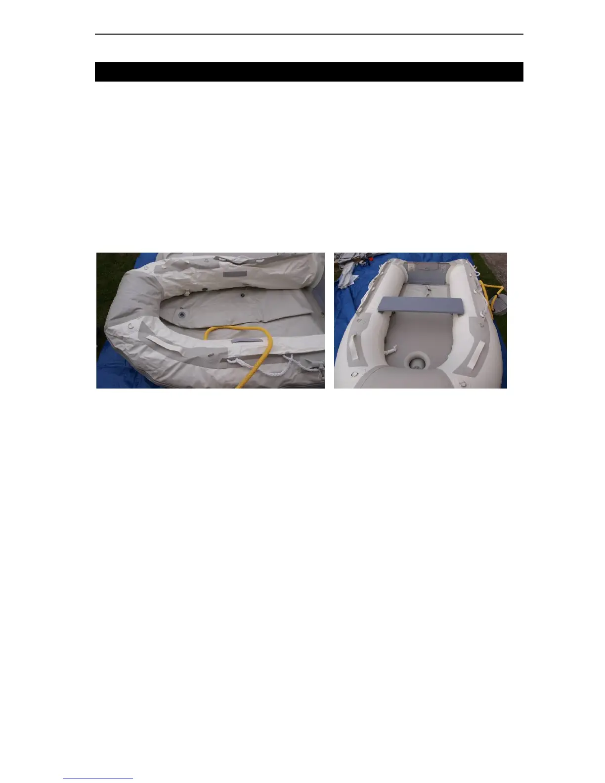 Note: Inflate the keel chamber only after you have inflated all other chambers of the boat and floor.