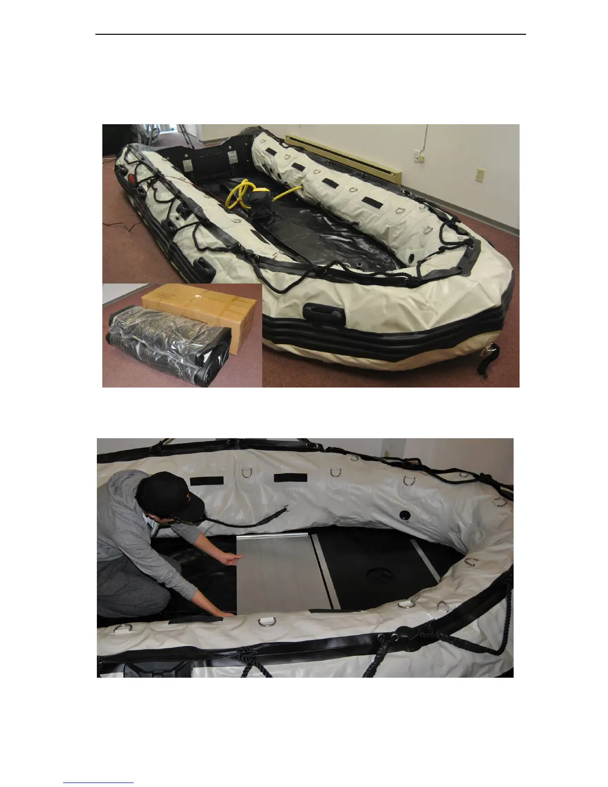 Unfold the boat and spread it out flat. Start with the front floorboard; slide it into the bow, push this as far in