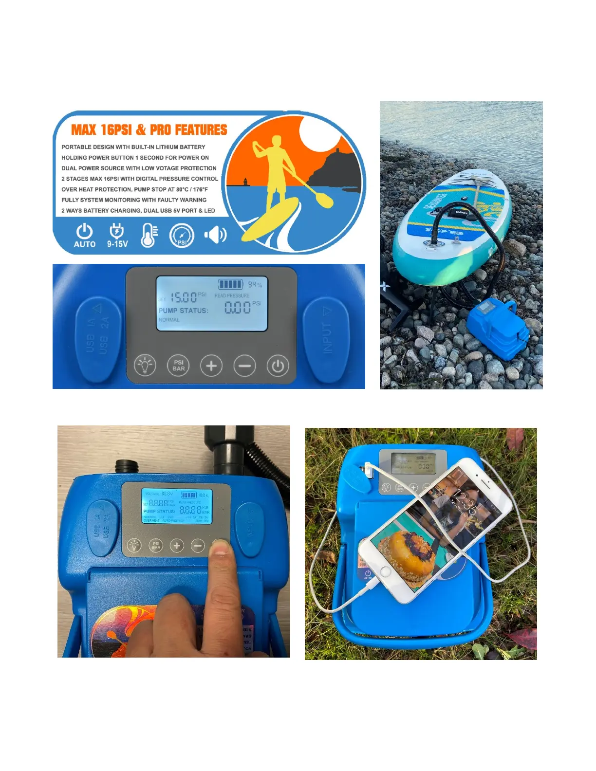 Seamax Portable 12V SUP-16DB Electric Air Pump with Built-in Lithium Battery