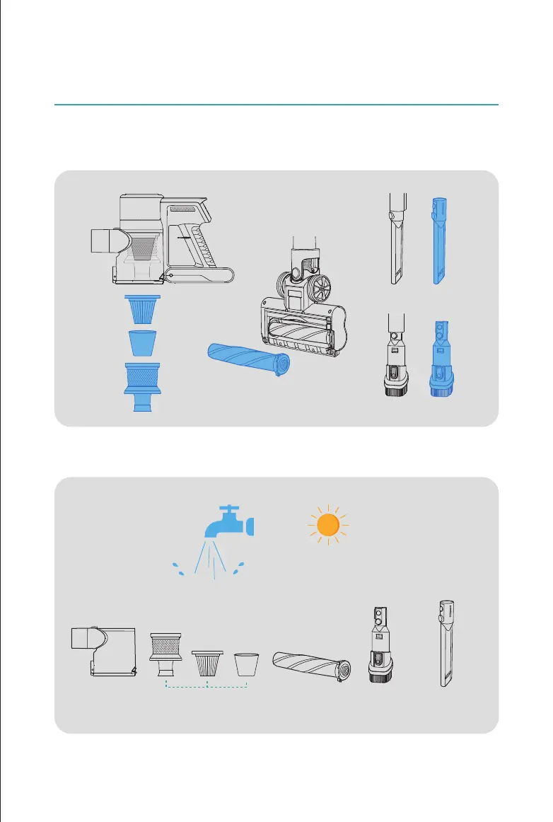 The blue parts in the picture below are washable. If you need to wash