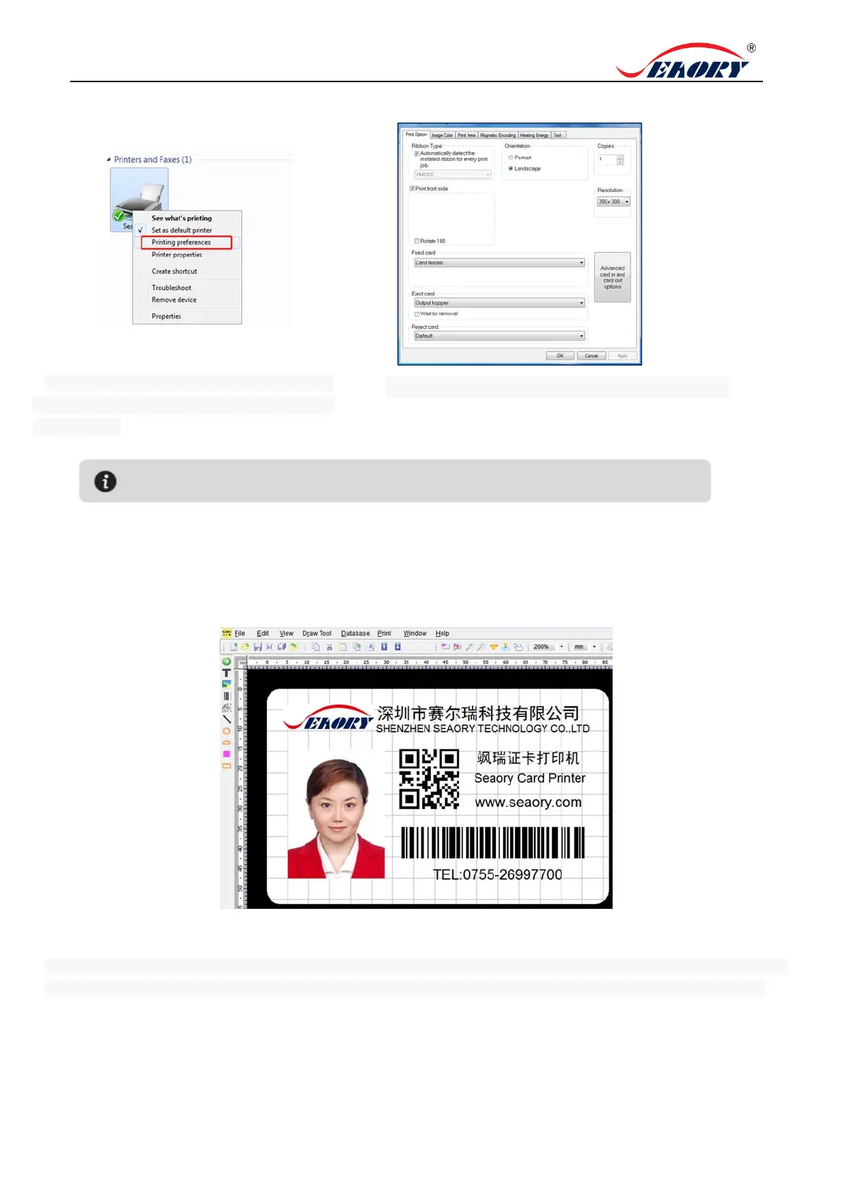 also do print test through Seaory's " iCARDE " software. For details, please refer to Seaory iCARDE manual.