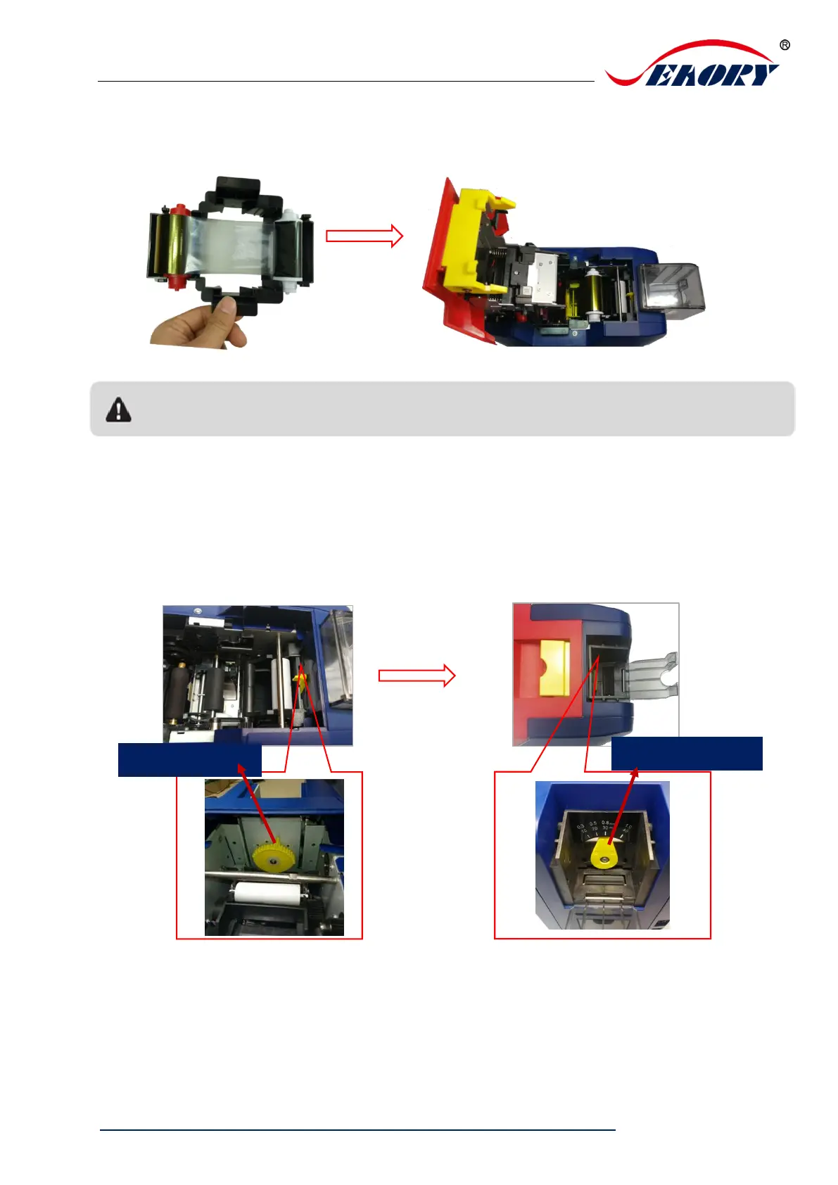 Step3: As shown in picture below, take ribbon cartridge’s side, install the ribbon