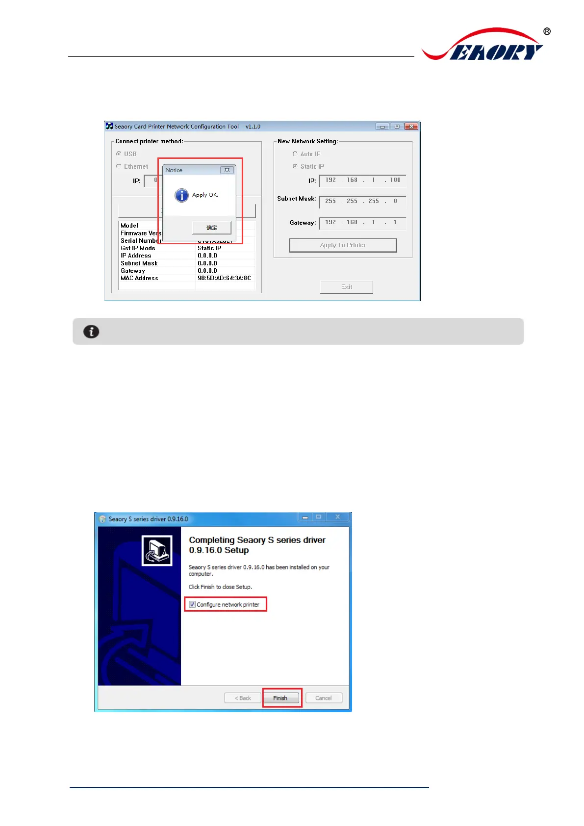 According to “6.4 network setting operating guide”, setting up the printer IP information,