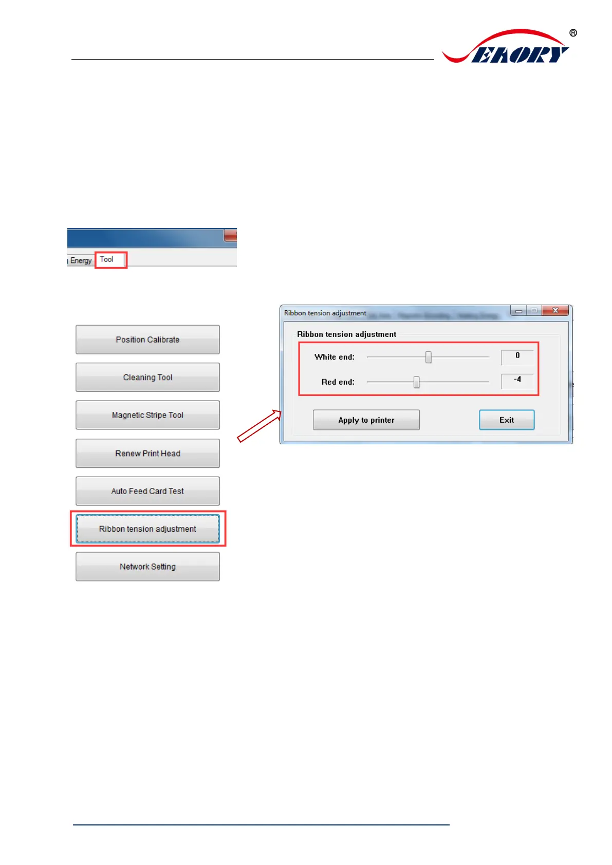 Apply to printer: after setting new parameter value, click “apply” to take effect.