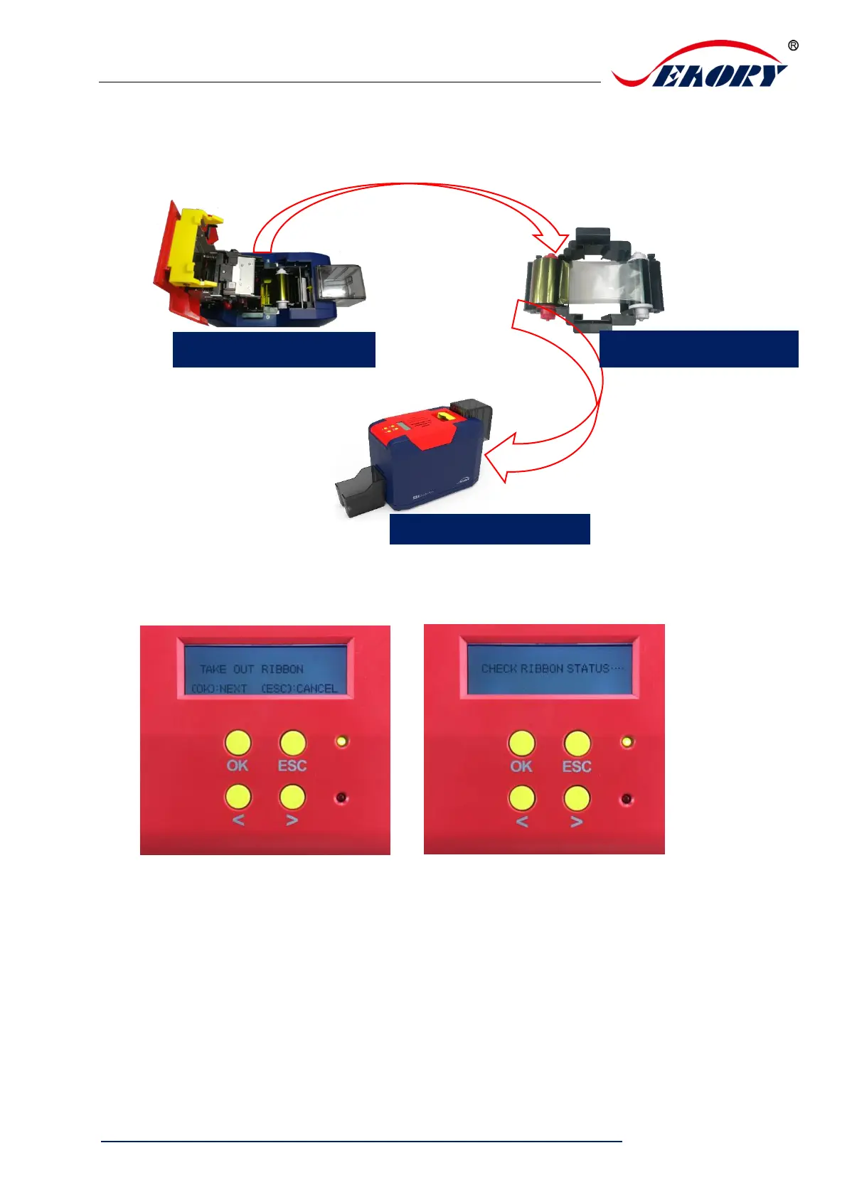 Step 4: Open the cover, take out ribbon cartridge, and then close the upper cover.