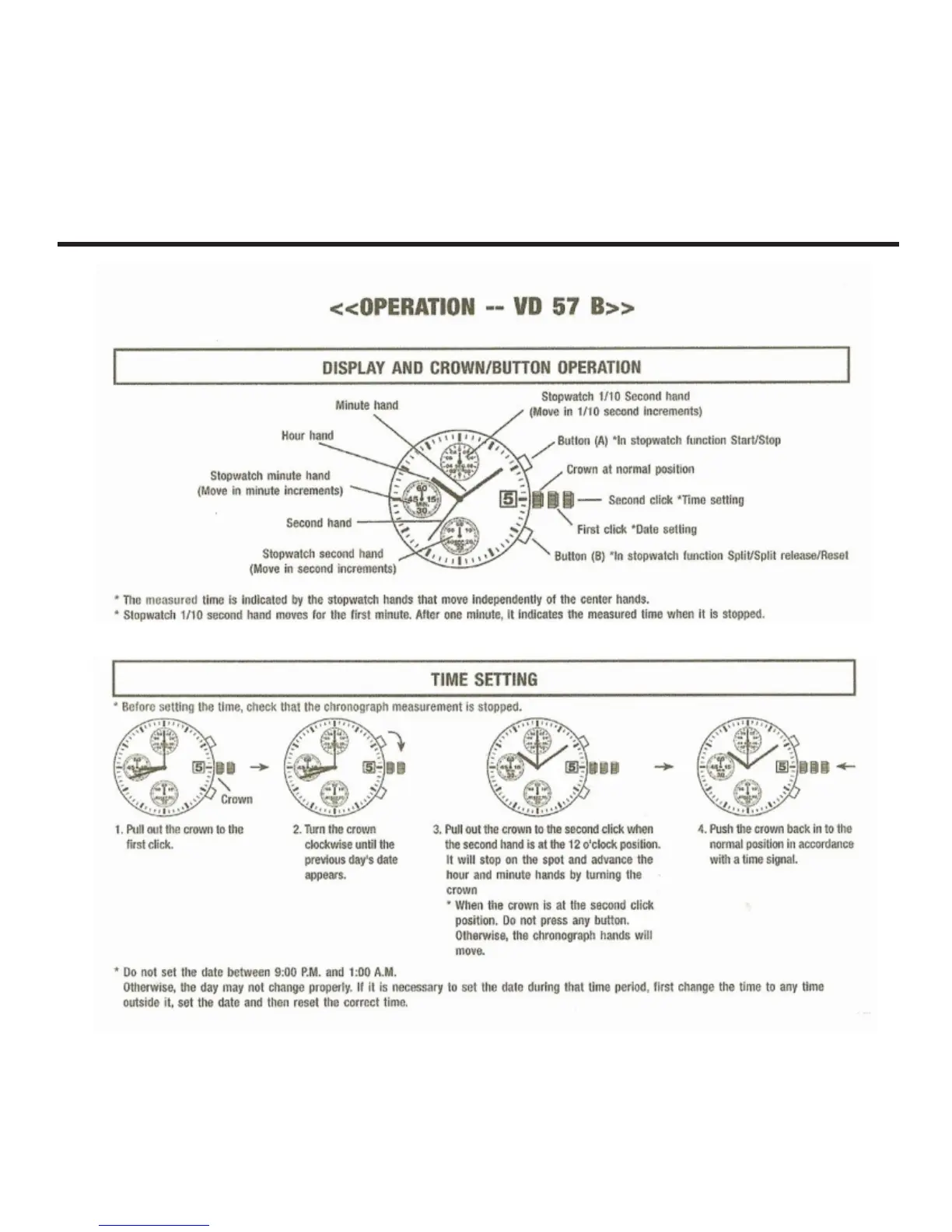 seapro Standard Model - Miyota VD57 B Movement Instructions