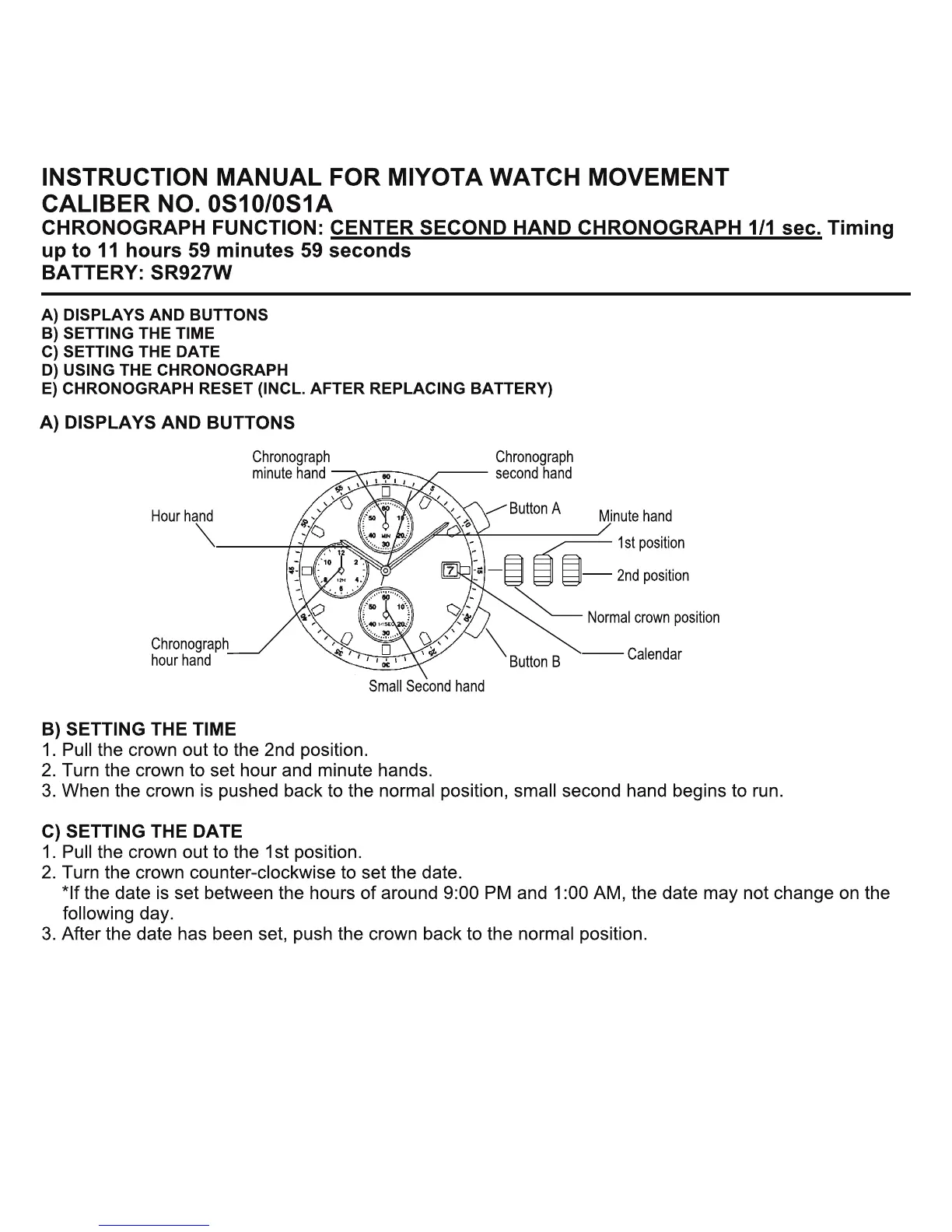 seapro Standard Model - Miyota OS10;OS1 A Movement Instructions