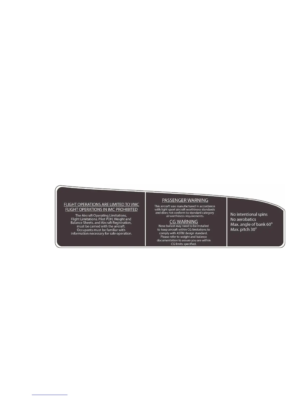 9.7.1 OPERATING LIMITATIONS AND PASSENGER WARNING ON INSTRUMENT PANEL