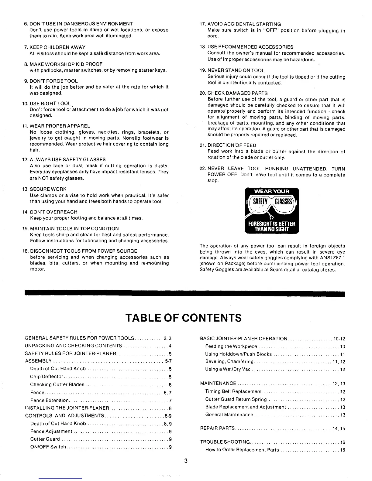SAFETY RULES FOR JOINTER-PLANER ...................... 5
