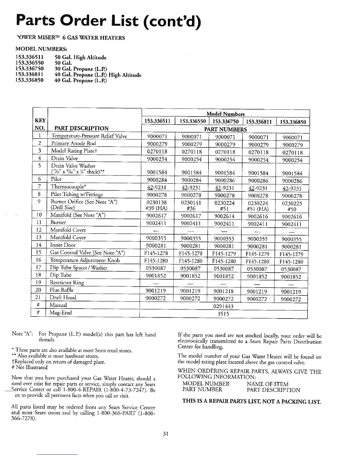 THIS IS A REPAIR PARTS LIST, NOT A PACKING HST.