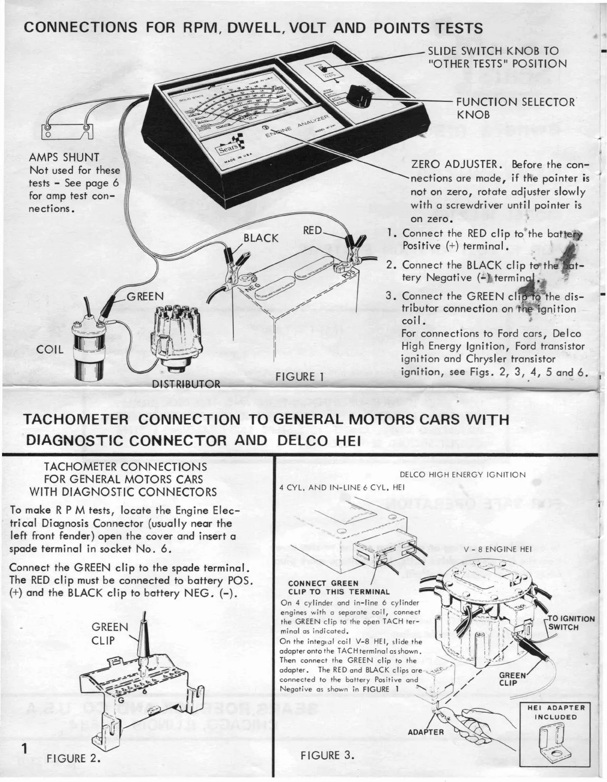 Sears 161.2161 - Engine Analyzer Connections (GM Systems); GM Tachometer Connections