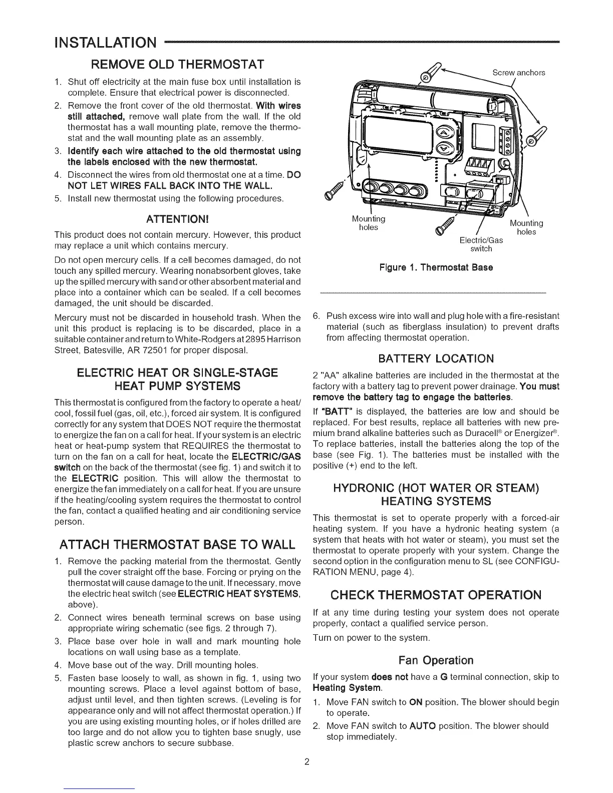 thermostat to operate properly with your system. Change the