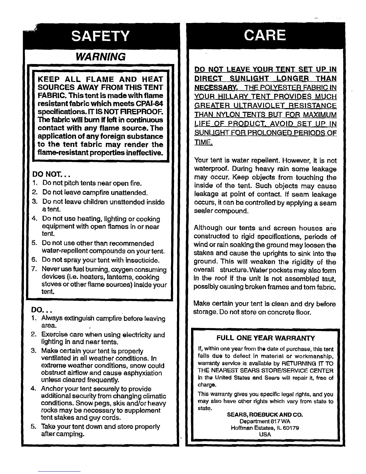 1. Do not pitch tents near open fire.