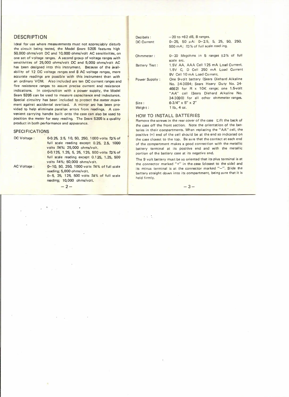 - sensitivities of 25,000 ohms/volt DC and 5,000 ohms/volt AC