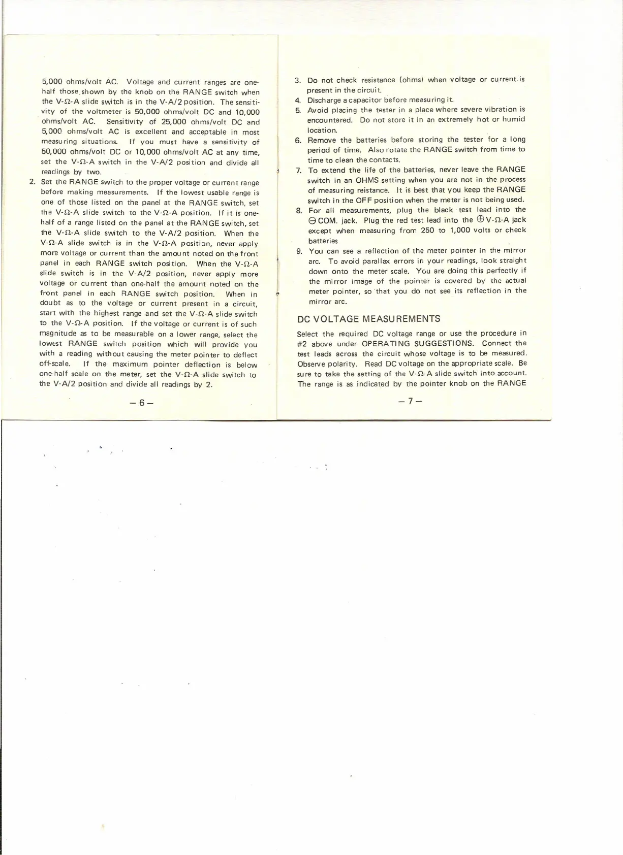 ohms/volt AC. Sensitivity of 25,000 ohms/volt DC and