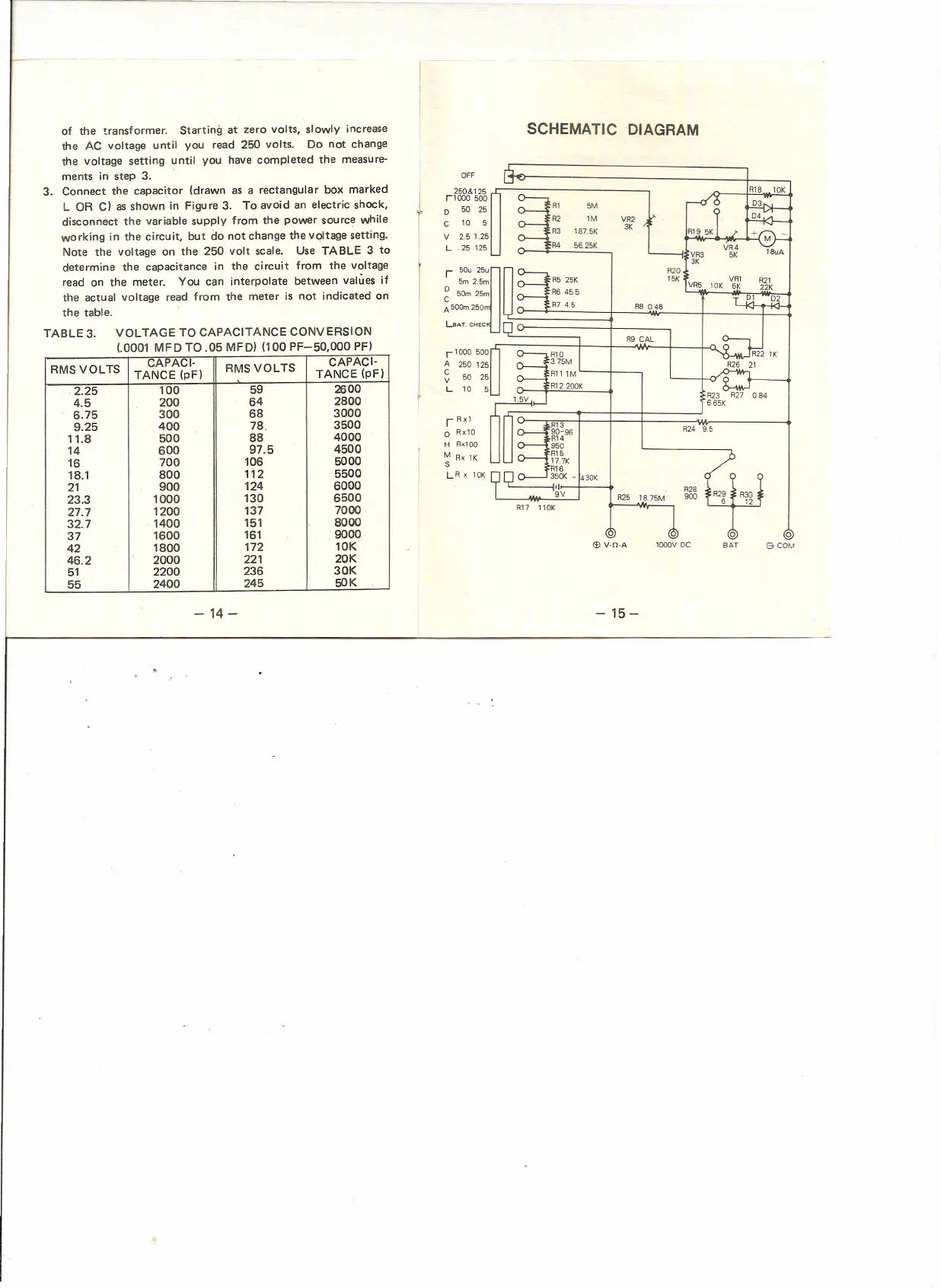 Note the voltage on the 250 volt scale. Use TABLE 3 to