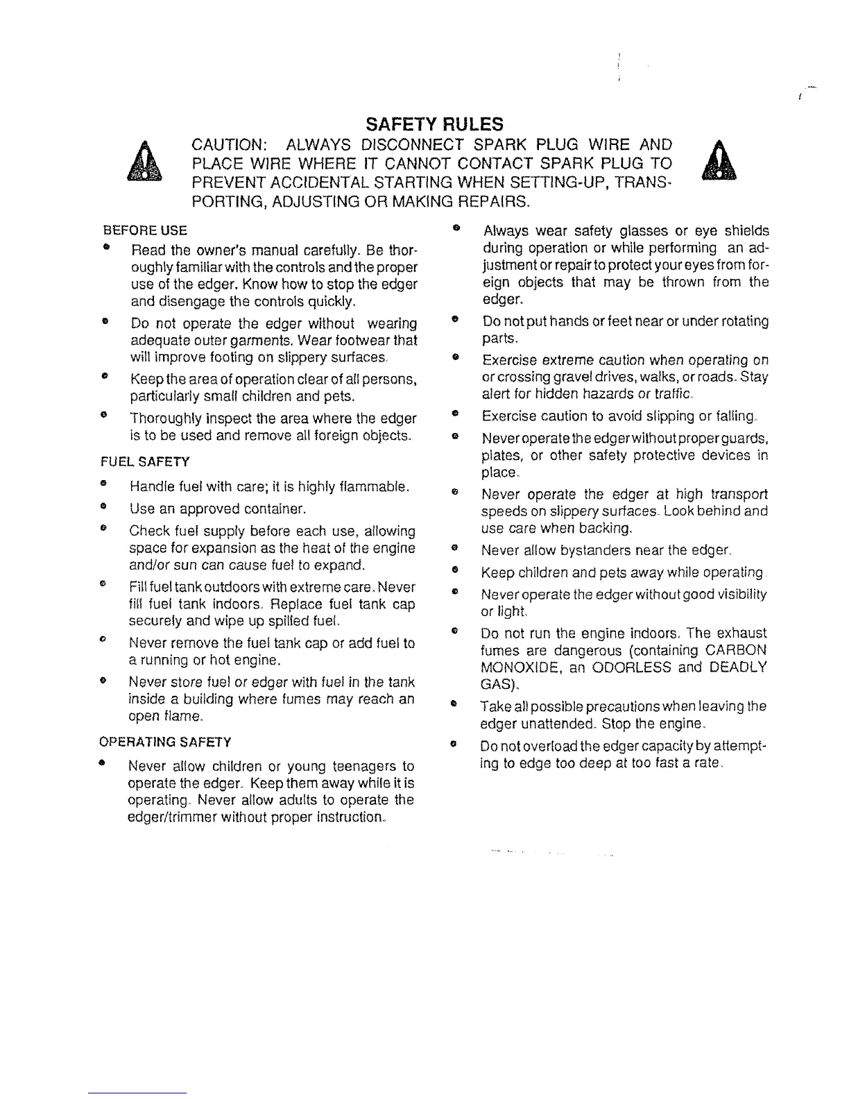 o Never store fuel or edger with fuel in the tank