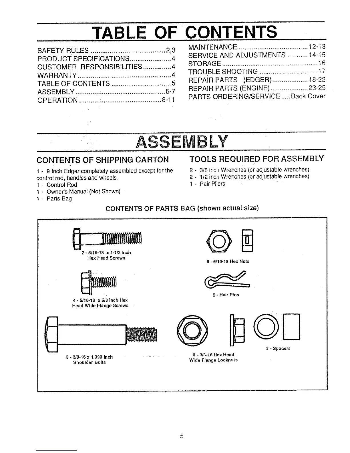 REPAIR PARTS (EDGER) .................... t 8-22