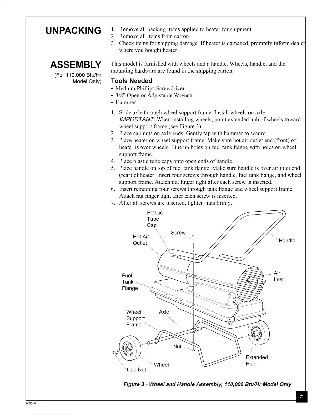 Figure 3 - Wheel and Handle Assembly, 110,000 Btu/Hr Model Only