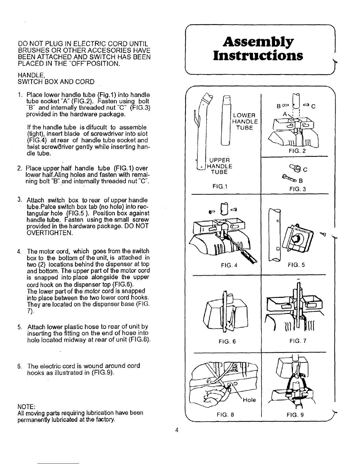 DO NOT PLUG IN ELECTRIC CORD UNTIL