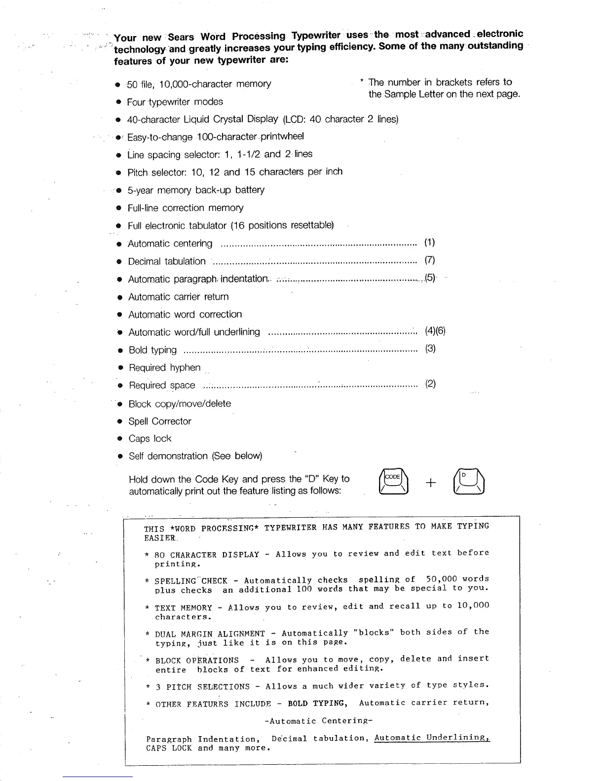 * OTHER FEATURES INCLUDE - BOLD TYPING, Automatic carrier return,