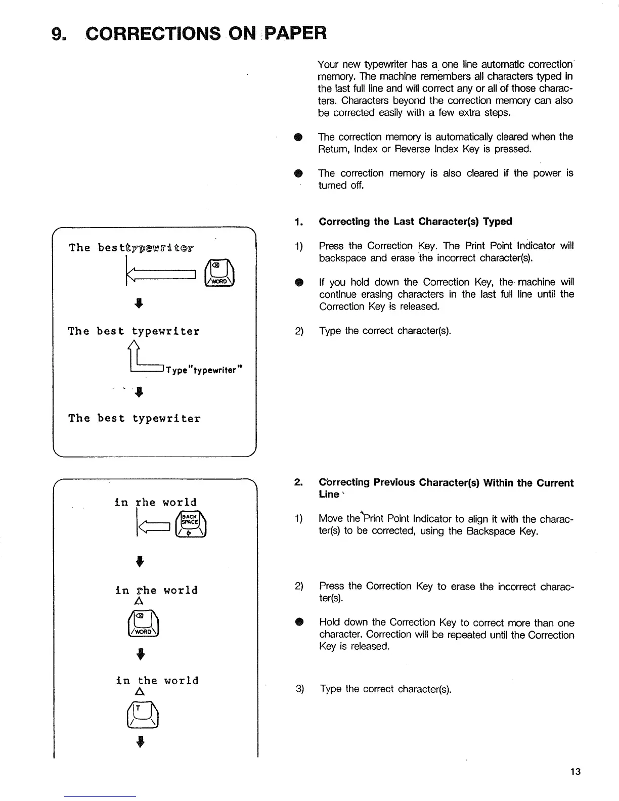 Press the Correction Key to erase the incorrect charac-