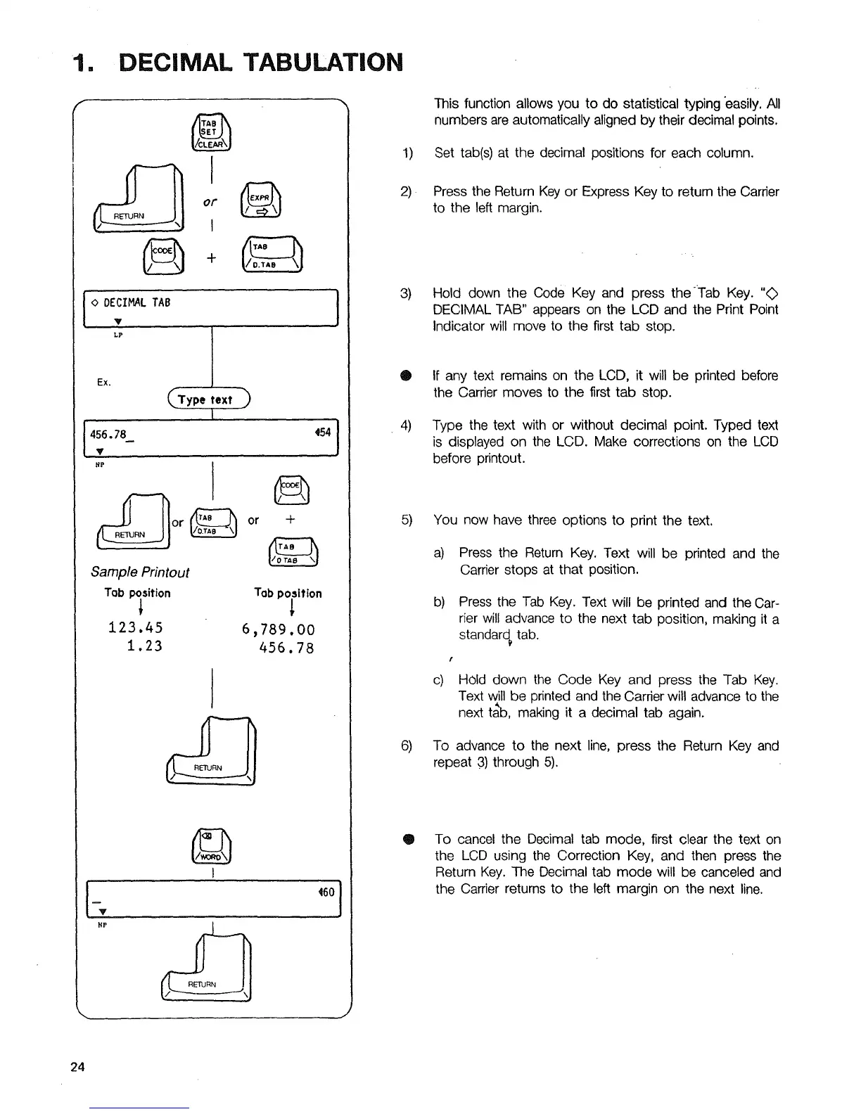 DECIMAL TAB" appears on the LCD and the Print Point