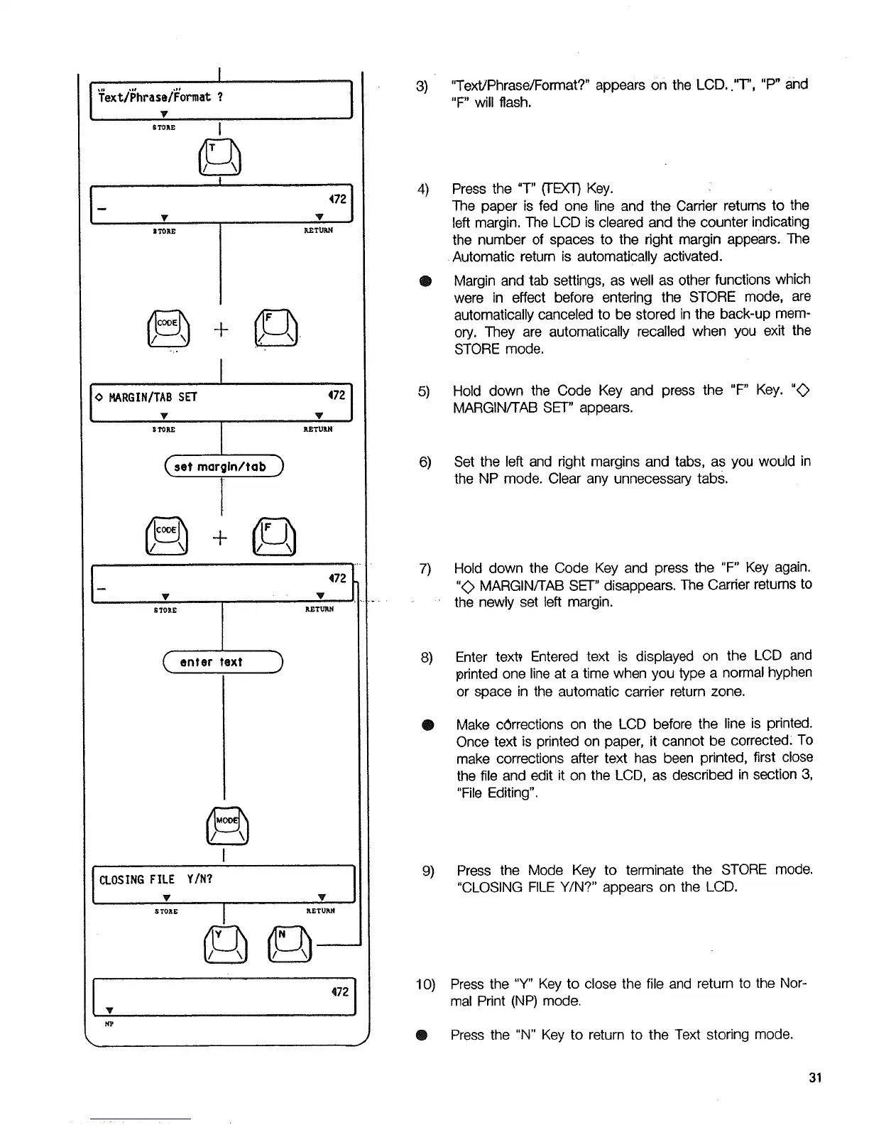 "CLOSING FILE Y/N?" appears on the LCD.