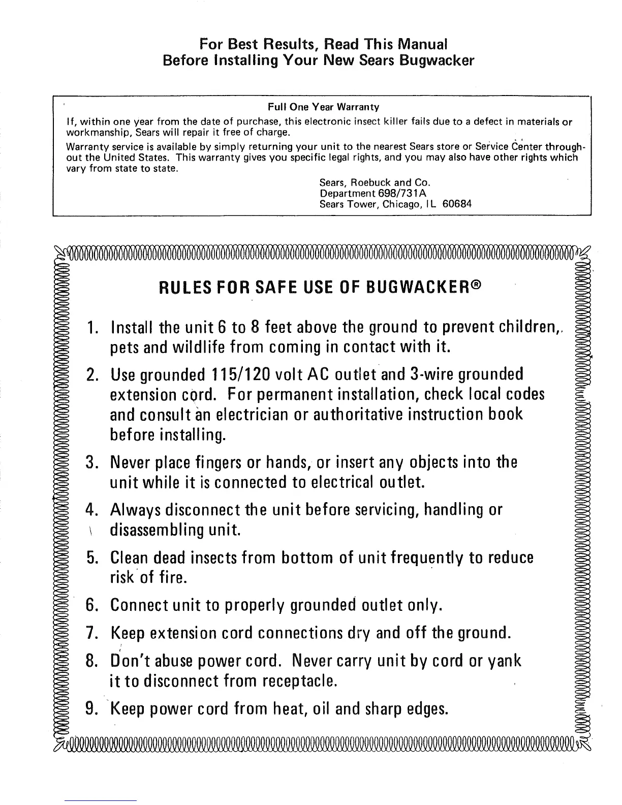 If, within one year from the date of purchase, this electronic insect killer fails due to a defect in materials or