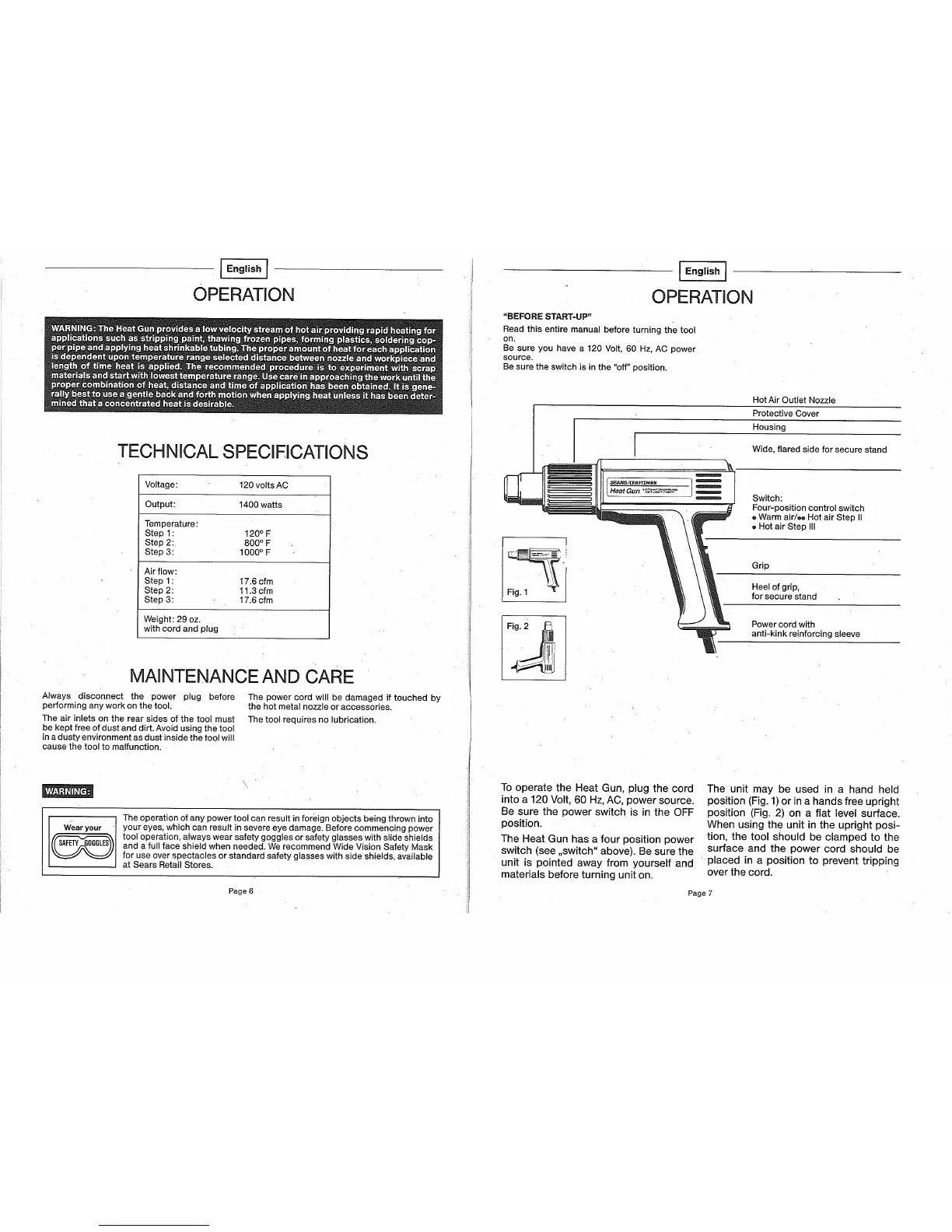 To operate the Heat Gun, plug the cord The unit may be used in a hand held