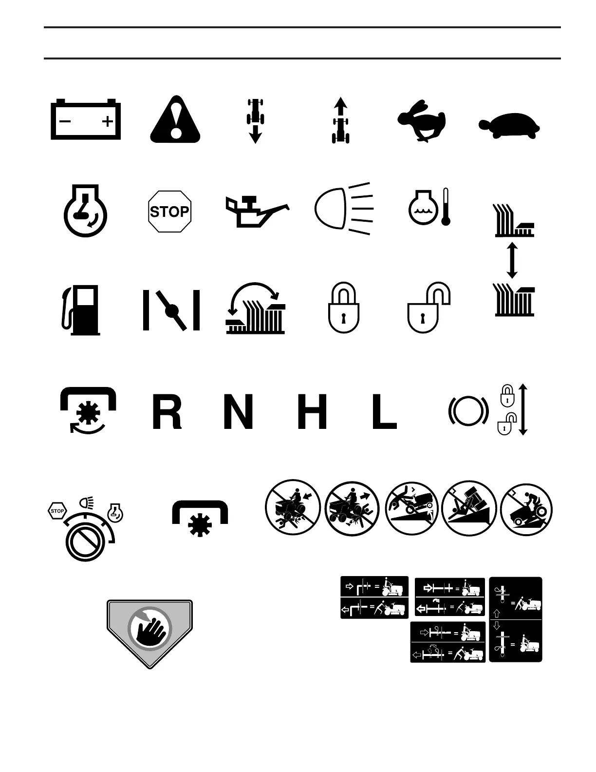 These symbols may appear on your tractor or in literature supplied with the product. Learn and understand their meaning.