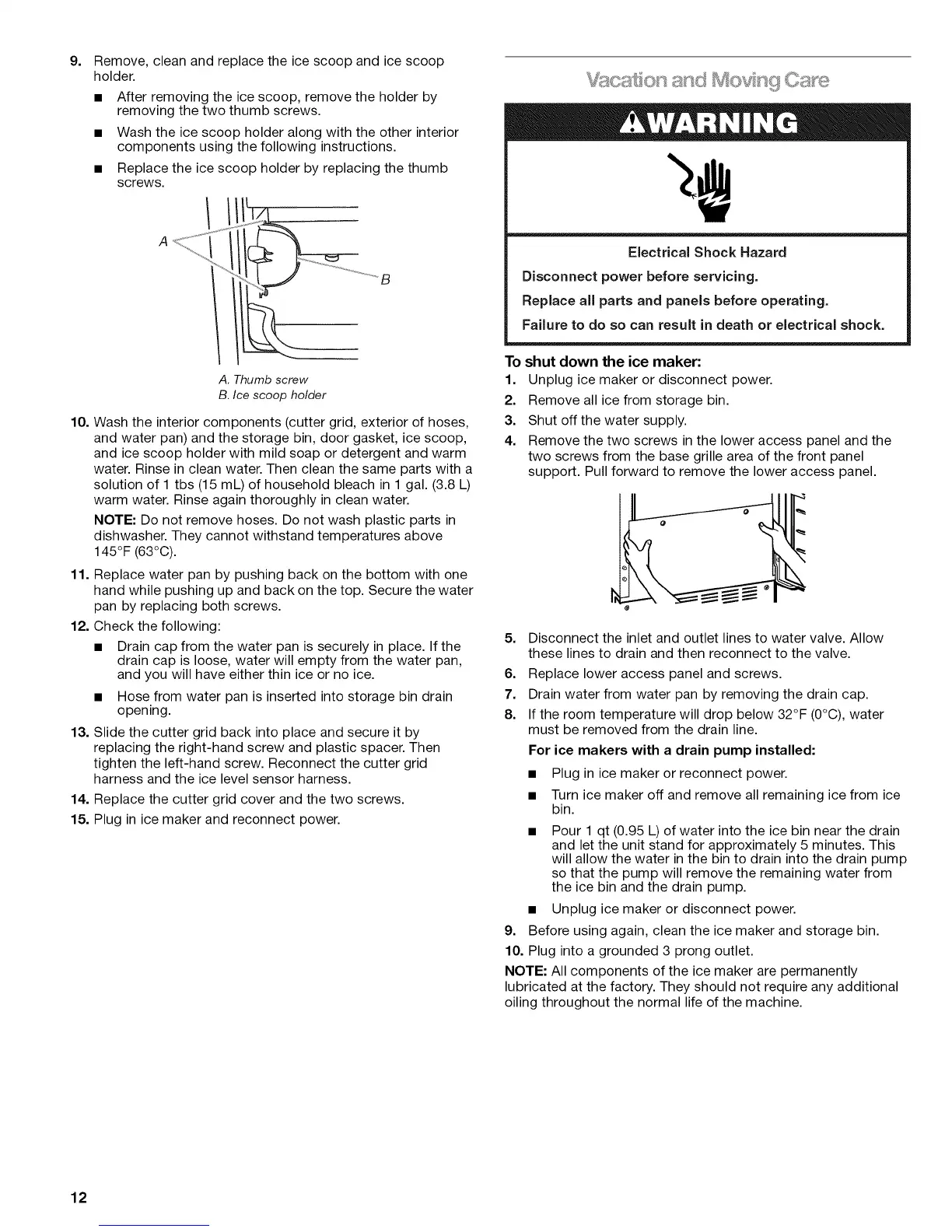 • Pour 1 qt (0.95 L) of water into the ice bin near the drain