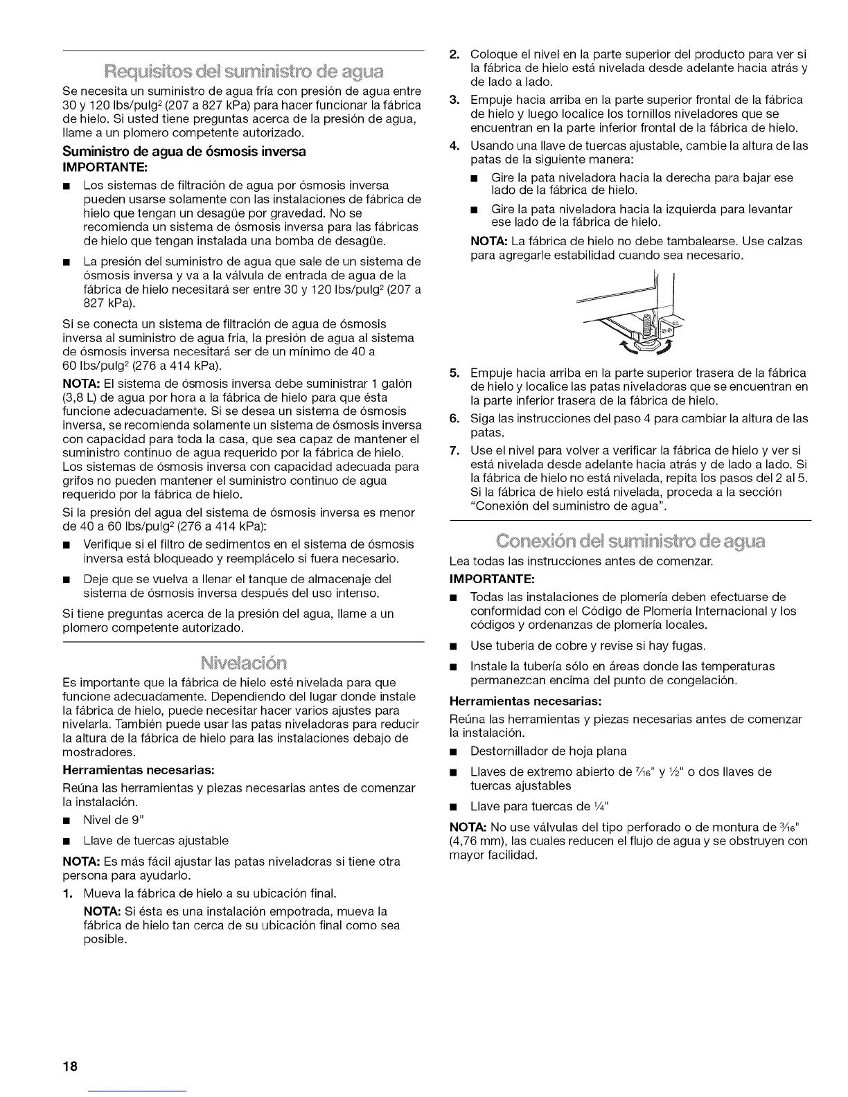 fabrica de hielo necesitar_ ser entre 30 y 120 Ibs/pulg 2 (207 a