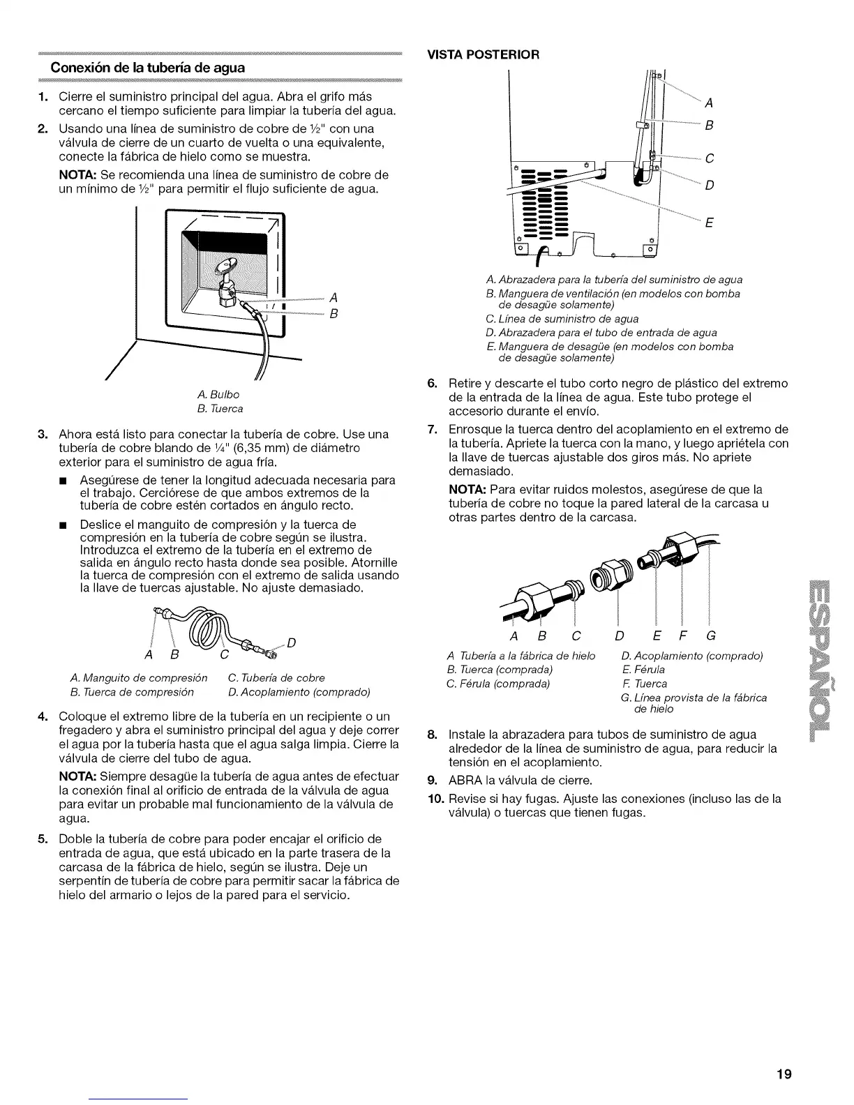 NOTA: Siempre desagQe la tuberia de agua antes de efectuar